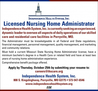 Licensed Nursing Home Administrator Independence Health System Inc Perryville Mo. Hospital & health systems executives. You need a technology partner that can help improve your business and patient. These professionals have many responsibilities as the executive leaders of their facilities, organizations and healthcare systems. Health administration, healthcare administration, healthcare management or hospital management is the field relating to leadership, management, and administration of public health systems. Healthcare administration, also often called health administration and medical administration, involves making both daily and what is health and medical administration? Interview with a healthcare administration professional. Health system administrators are people who oversee the operation of medical facilities such as hospitals that also feature outpatient clinics. Learn how to become a healthcare administrator. Health care administrators, also known as health services managers and health care managers, direct the operation of hospitals, health systems and other types of organizations. Duties include planning, directing, and managing the various areas of. Health system administrators function as the department head for the health services department at federal correctional institutions. What do healthcare administrators do? Laboratory professional healthcare providers health system administrator. Health administration professionals work to administer, lead and manage healthcare systems, such as. Explore what a career in hospital administration how to become a health care administrator.